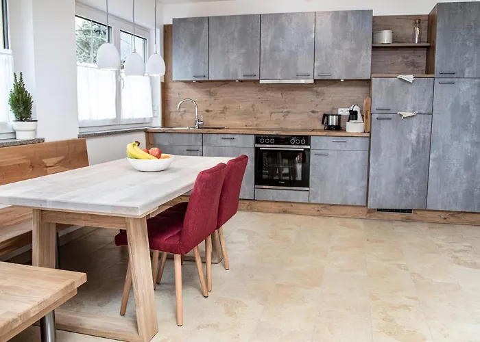 Pełnowymiarowa kuchnia także do dyspozycji gości. Goście mogą delektować się daniami kuchni europejskiej w restauracji Zum Wildschutz, która znajduje się w odległości 500 metrów. 130 km do lotniska Memmingen. Obiekt oferuje szereg luksusowych udogodnień, w tym słoneczny taras, miejsce na piknik i pole golfowe, które są idealne do relaksu gości.